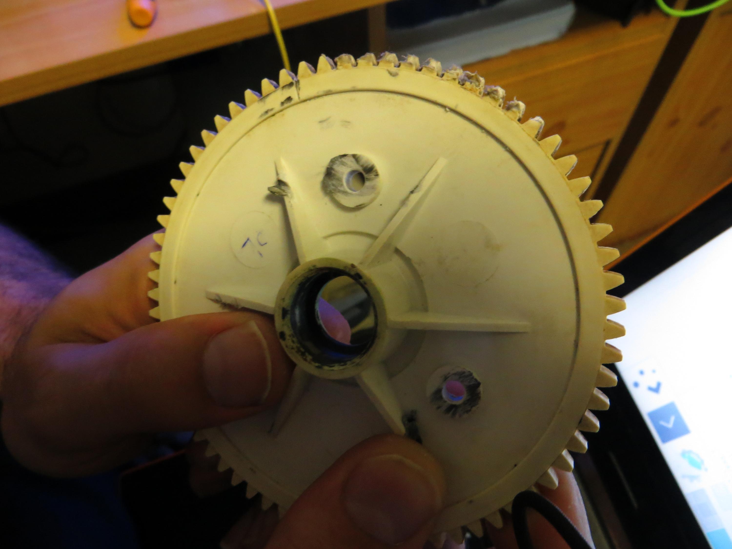 We first needed to disassembly the slicer and carefully detach the part from the blade. As you can see, there were some worn out teeth, not allowing the blade to properly rotate.